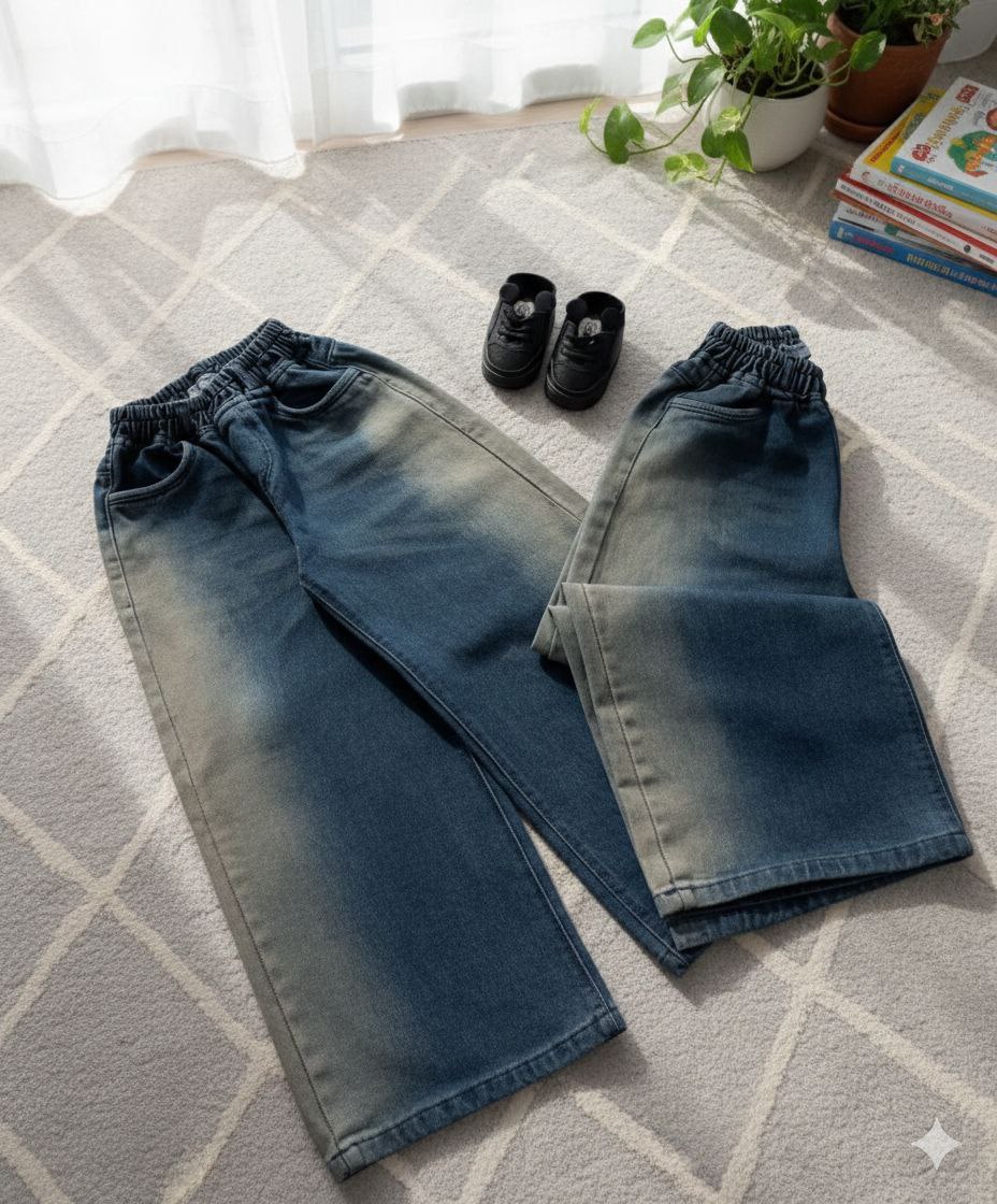 شلوار بَگ جین پنبه درجه یک بچگانه