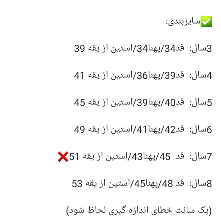 ۵سال قد۴۰ پهنا۳۹ استین از یقه ۴۵