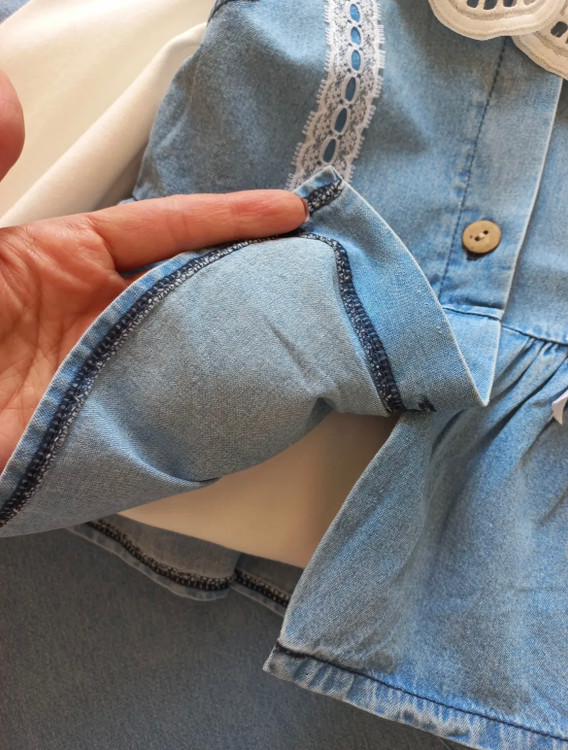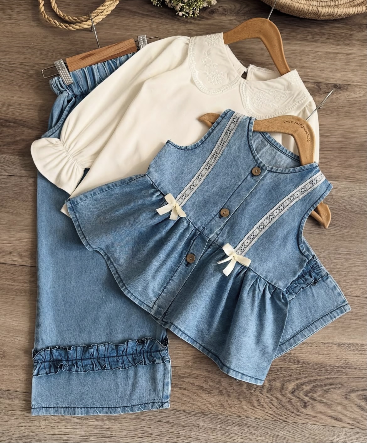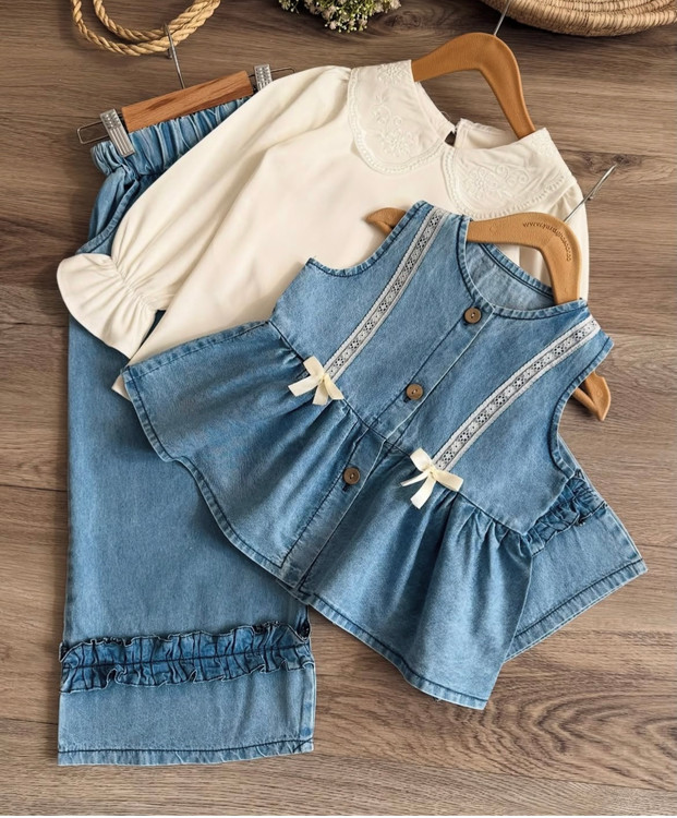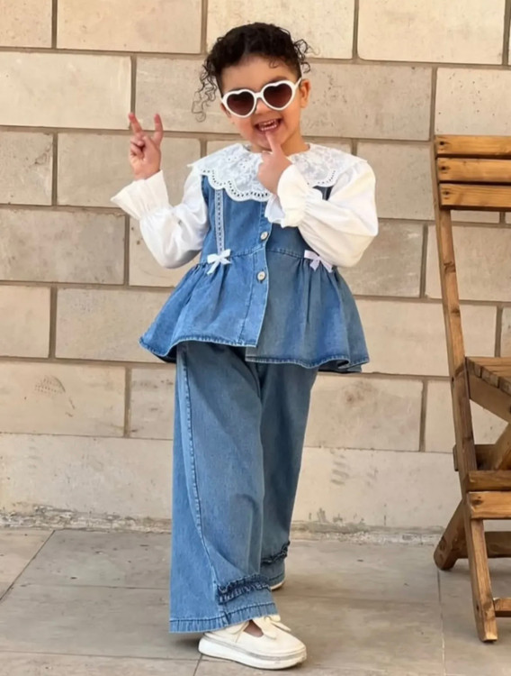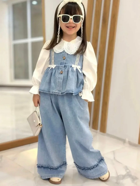 شومیز آستیندار + سارافن جین + شلوار بگ 👖💙