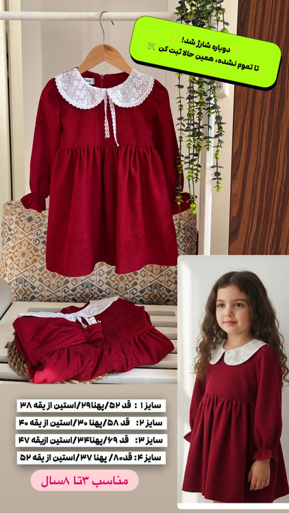 پیراهن کبریتی دخترانه
