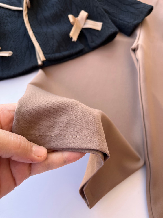 سایز۳ : قدکت۴۰/پهنا۳۶/استین از یقه۴۳/قدشلوار۶۹/کمر۲۳/قدتاپ۴۳/پهنا۳۲
