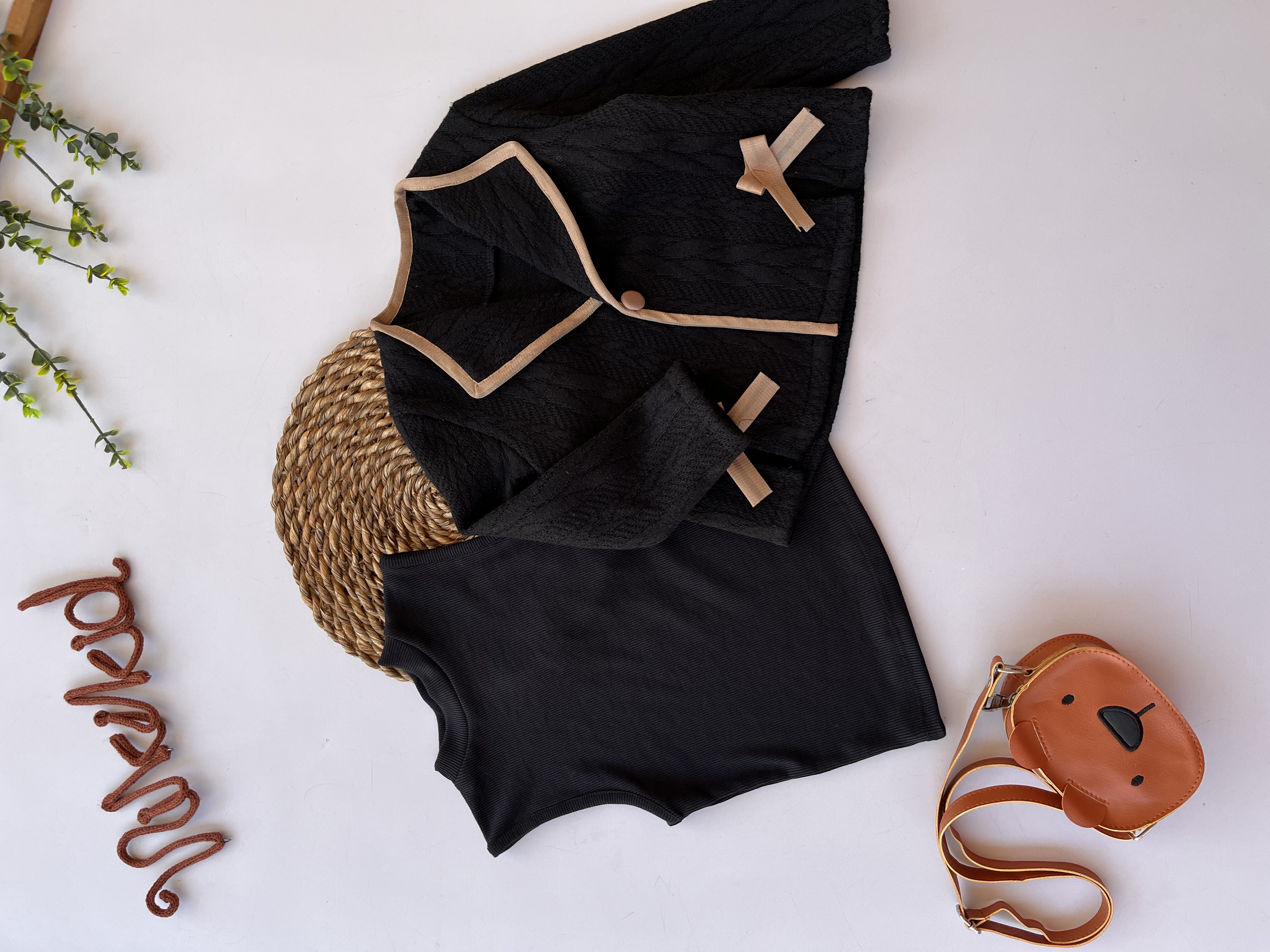 سایز۵: قدکت۵۵/پهنا۴۰/استین از یقه۴۶/قدشلوار۷۸/کمر۲۵/قدتاپ۵۰/پهنا۳۵