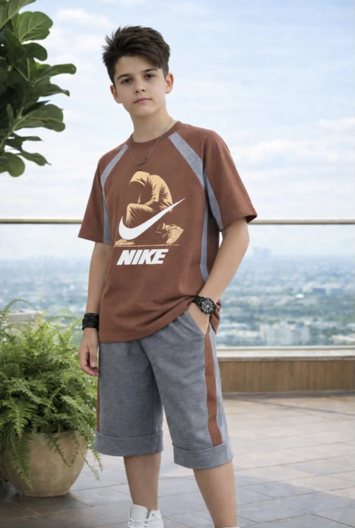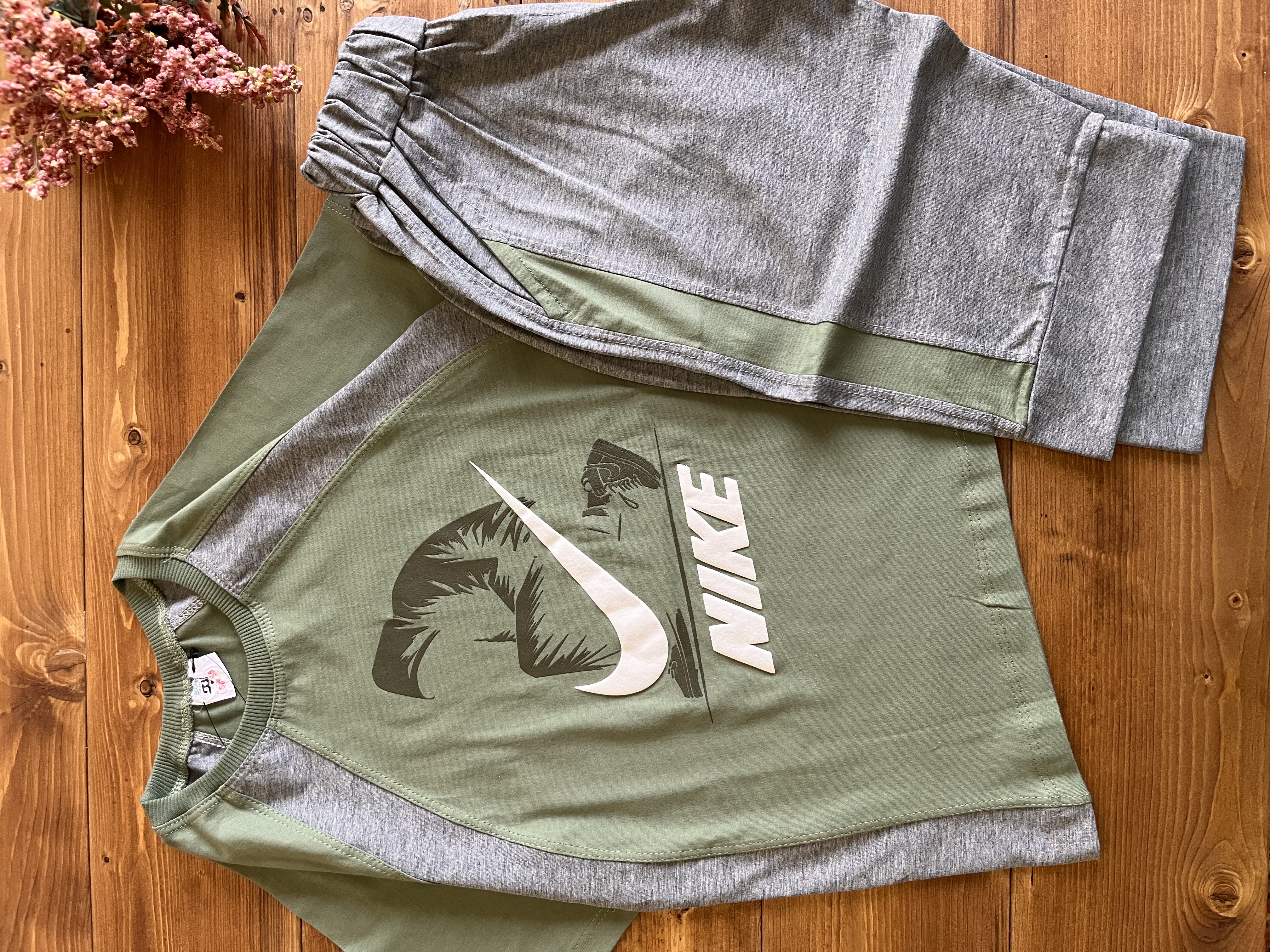 جنس تیشرت تمام پنبه سوپر 💯 جنس شلوارک ملانژ پنبه لاکرا دار(گرم بالا) فوق العاده نرم و لطیف✔️ سایز ۵۵ قد۵۵/پهنا۴۰/شلوارک۵۰ سایز۶۰ قد۶۰/پهنا۴۳/شلوارک۵۵ سایز۶۵ قد۶۵/پهنا۴۶/شلوارک۶۰ سایز۷۰ قد۷۰/پهنا۴۸/شلوارک ۶۵