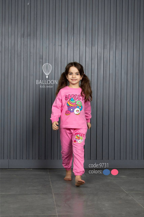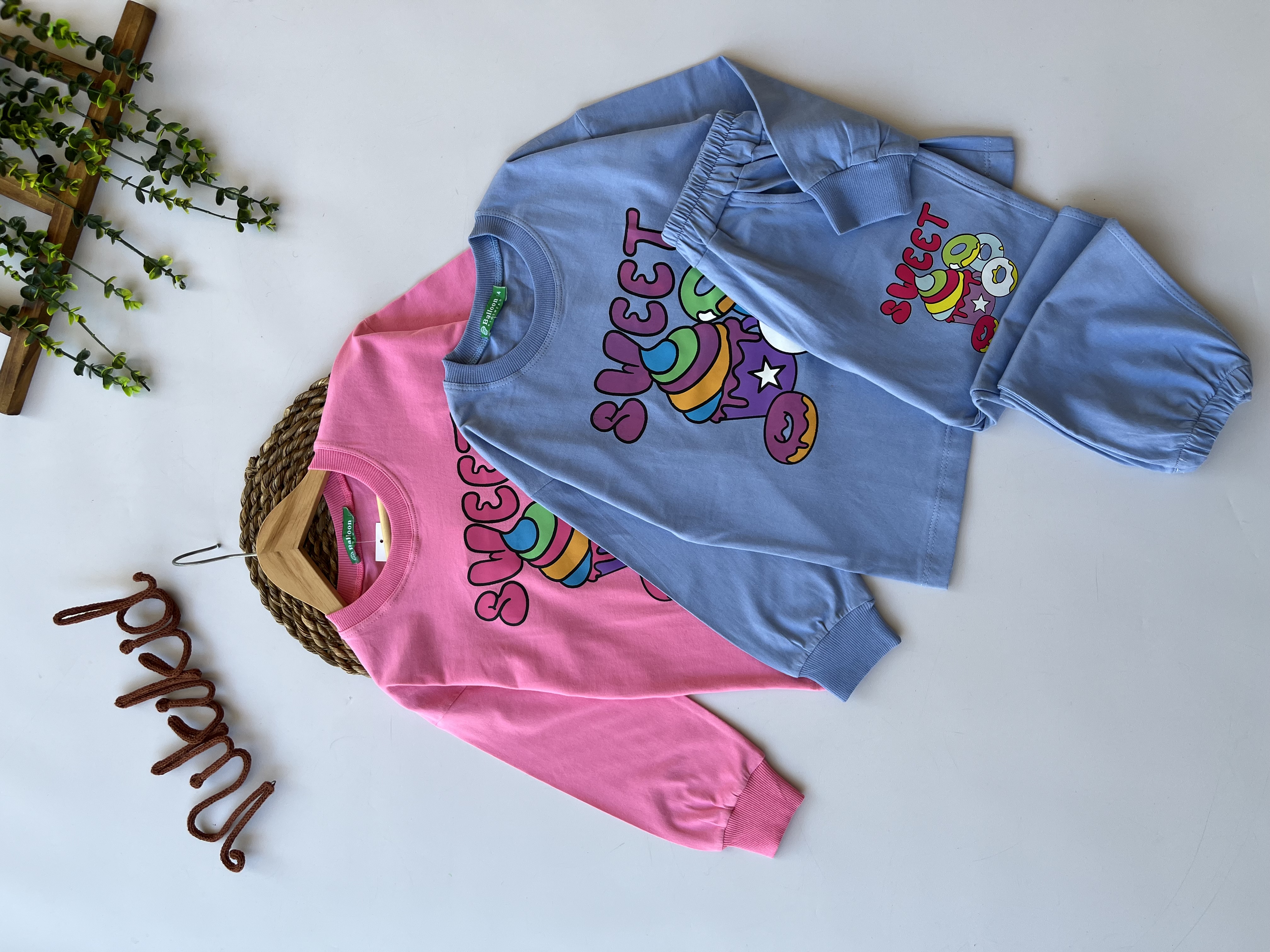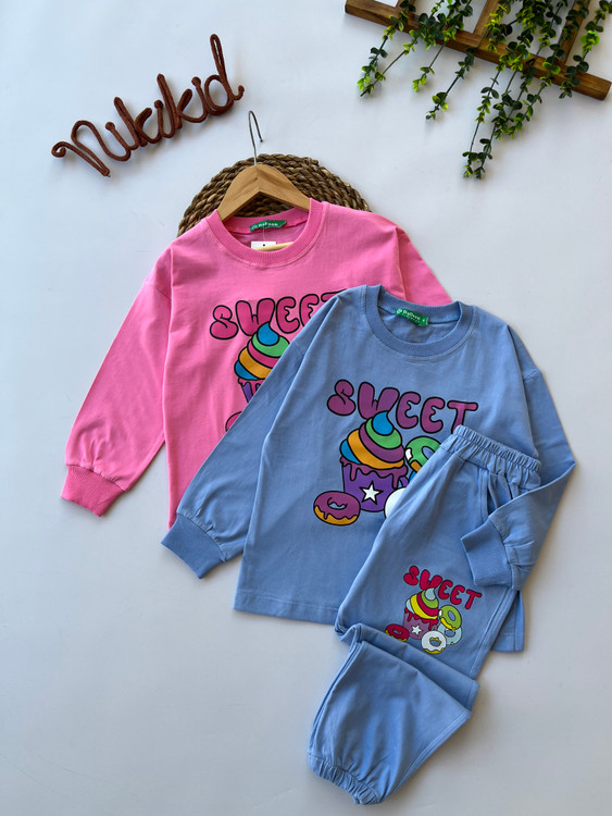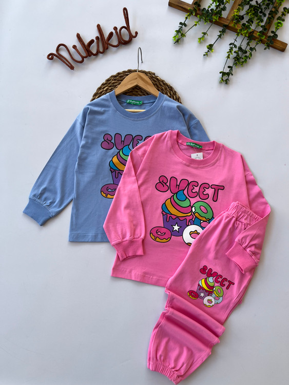 بلوز شلوار نخ پنبه دخترانه با طرح کیک
