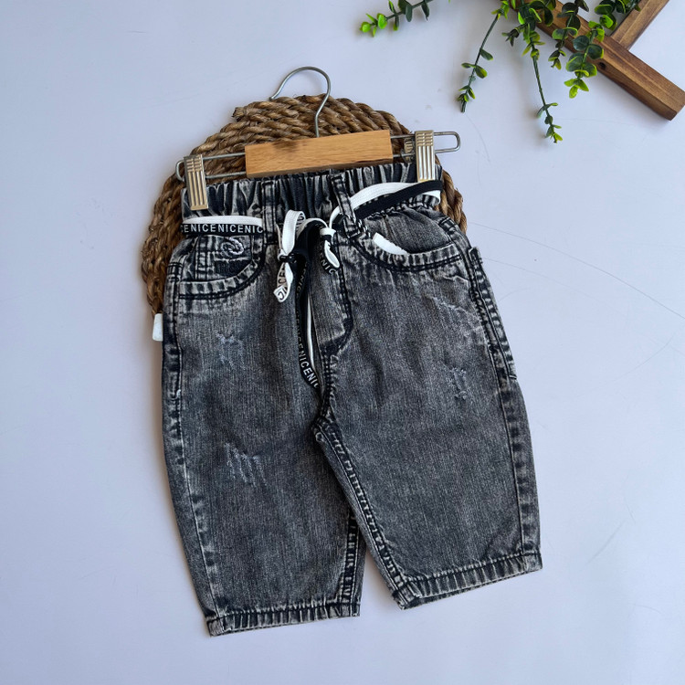 شلوارک جین ذغالیِ خاص و راحت، مخصوص بچههای شیکپوش. پارچه جین سبک و لطیف که اذیت نمیکنه. بند کنفی بامزه برای استایل متفاوت و خاص. دوخت تمیز و حرفهای، مناسب استفادهی طولانیمدت.
