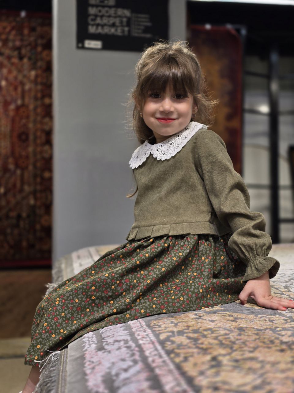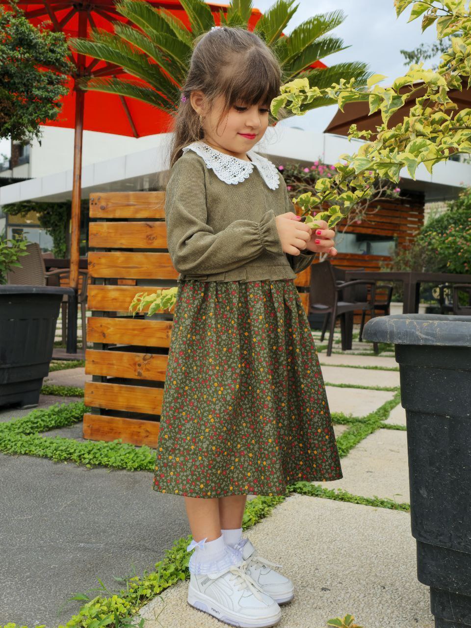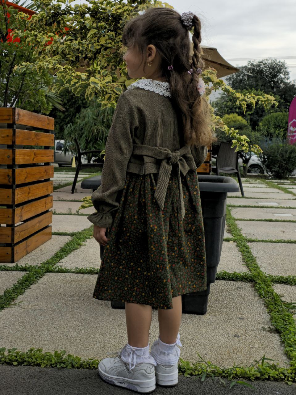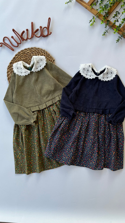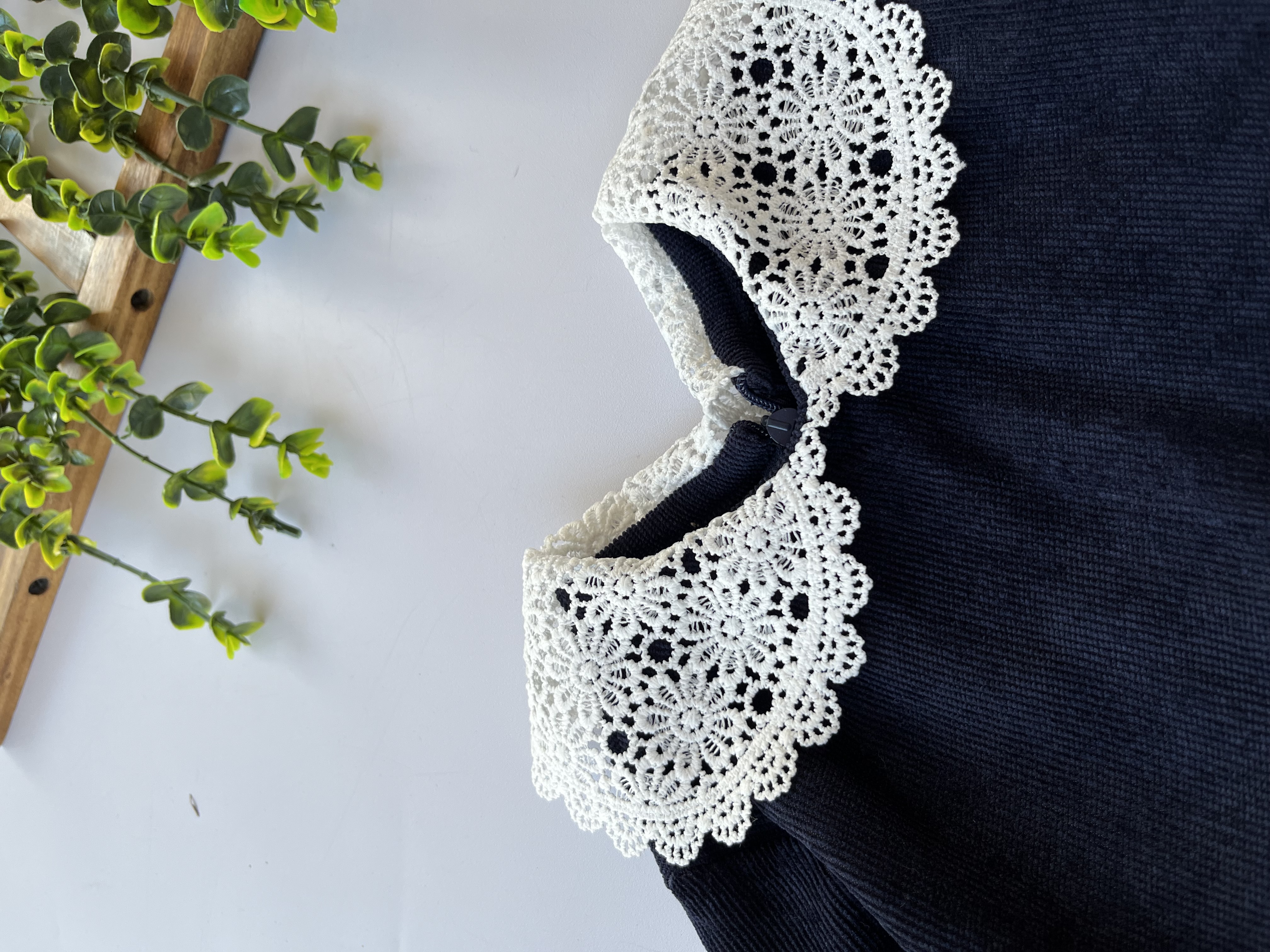 بالا تنه پیراهن مخمل کبریتی درجه یک به همراه یقه گیپور زیبا